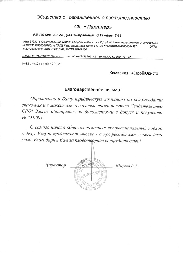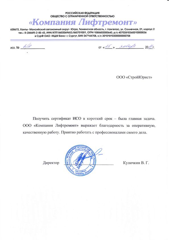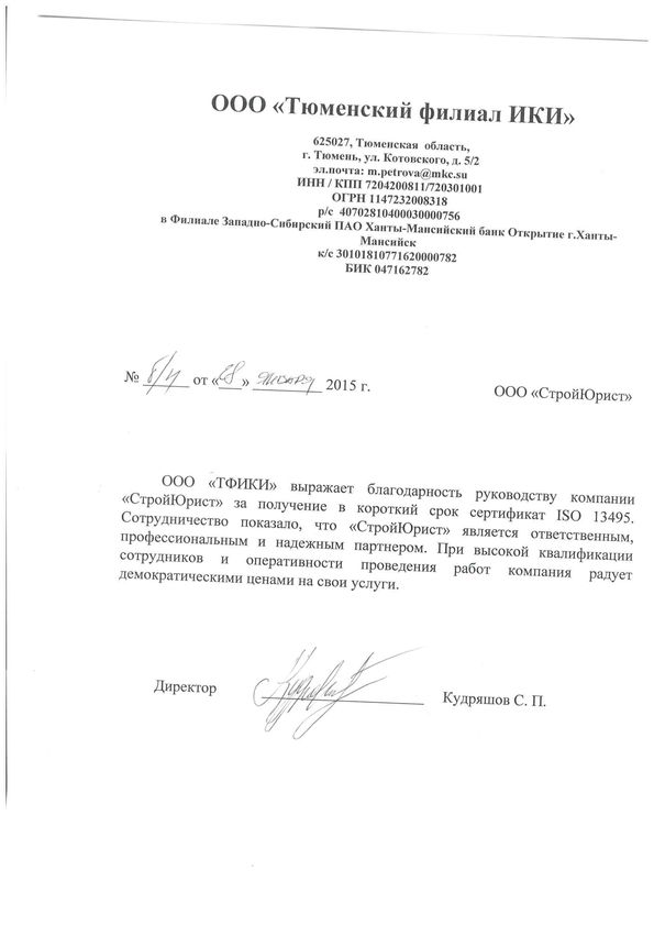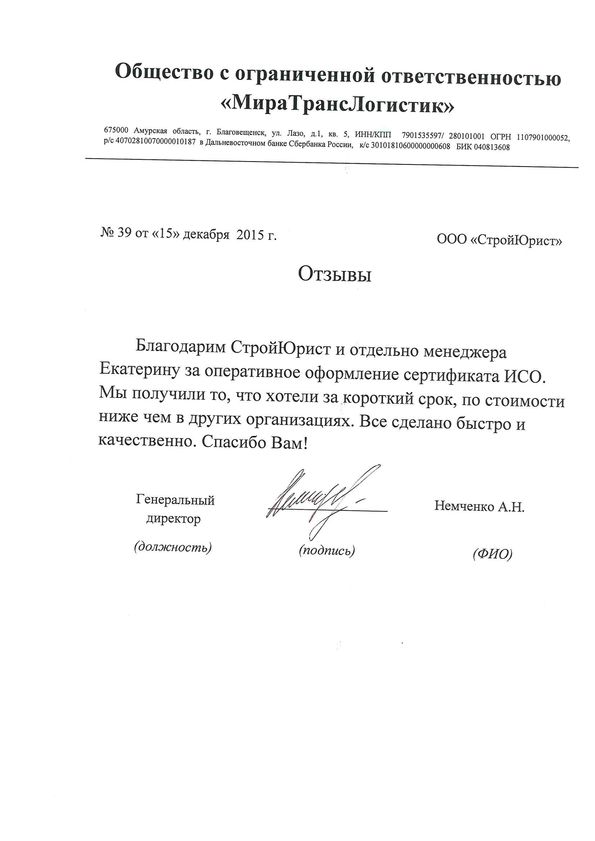 Отзывы клиентов "СтройЮрист" по ISO в Альметьевске