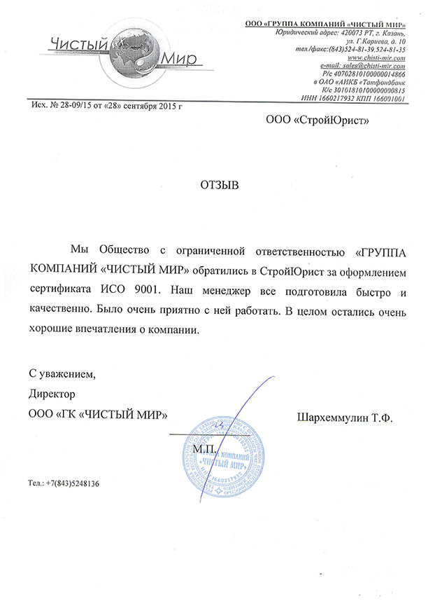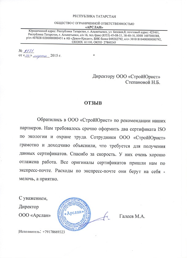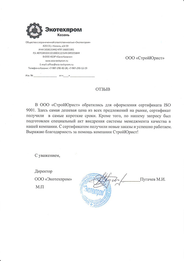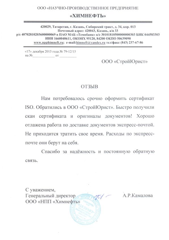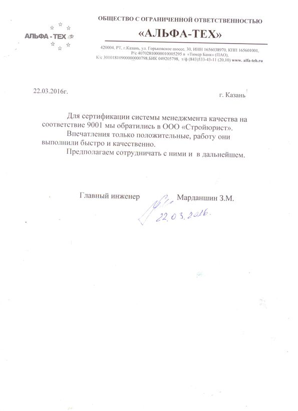 Отзывы клиентов "СтройЮрист" по ISO в Альметьевске