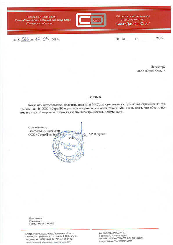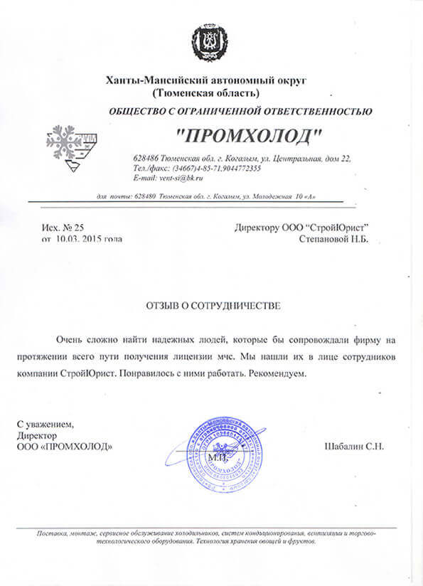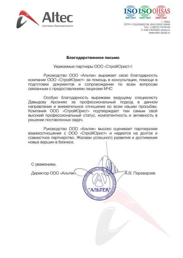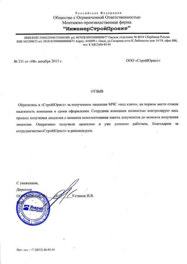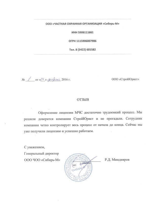 Отзывы клиентов "СтройЮрист" по лицензированию МЧС в Альметьевске