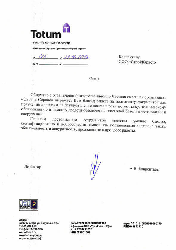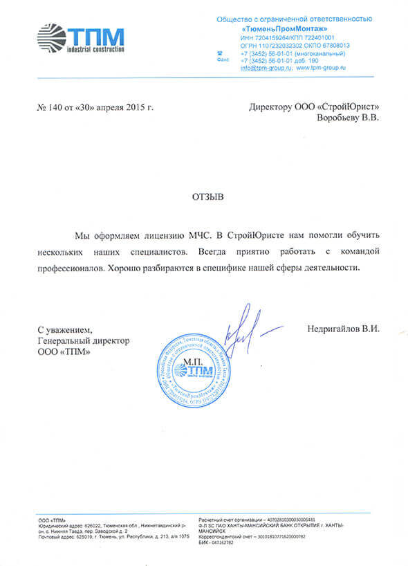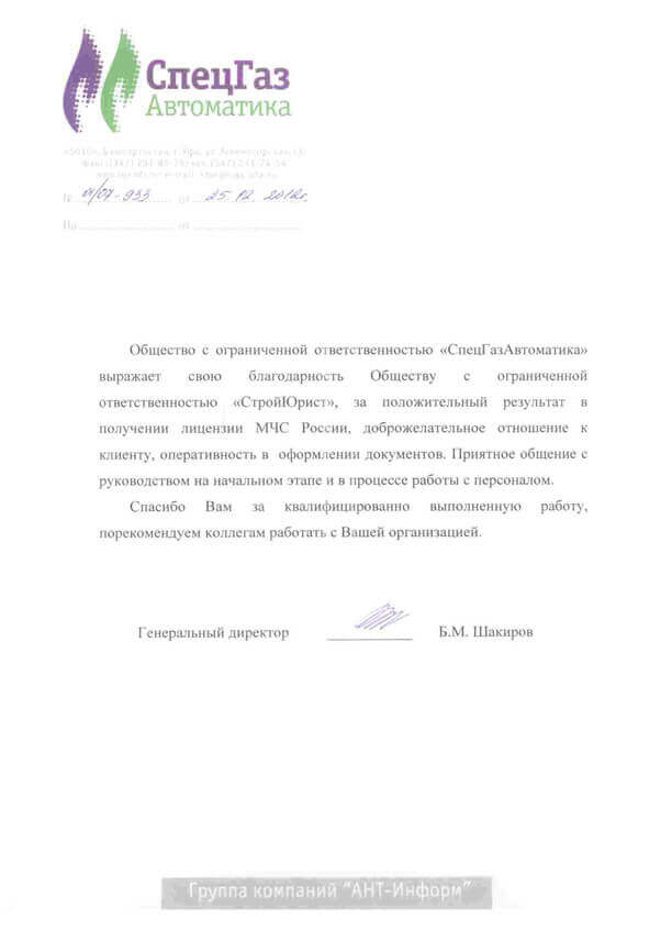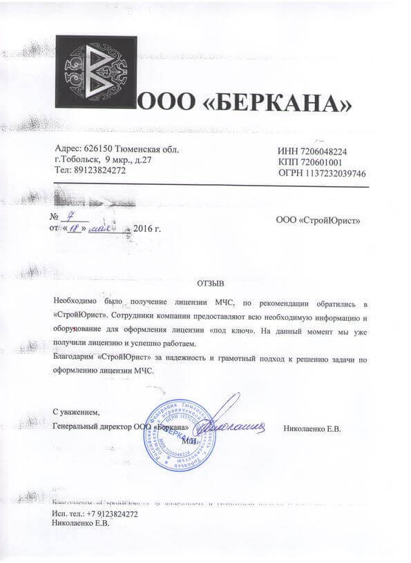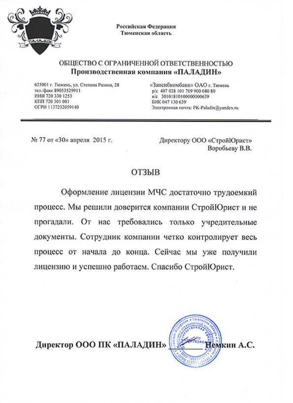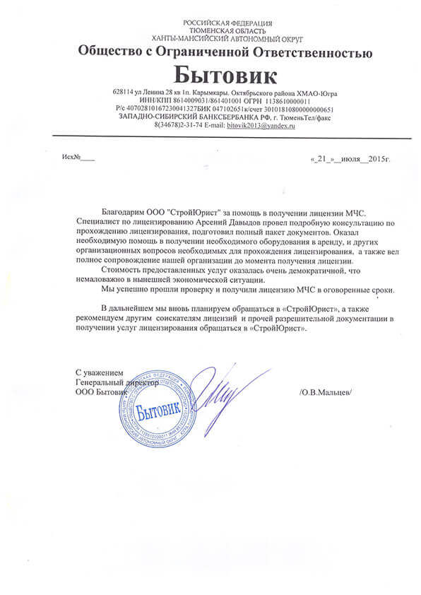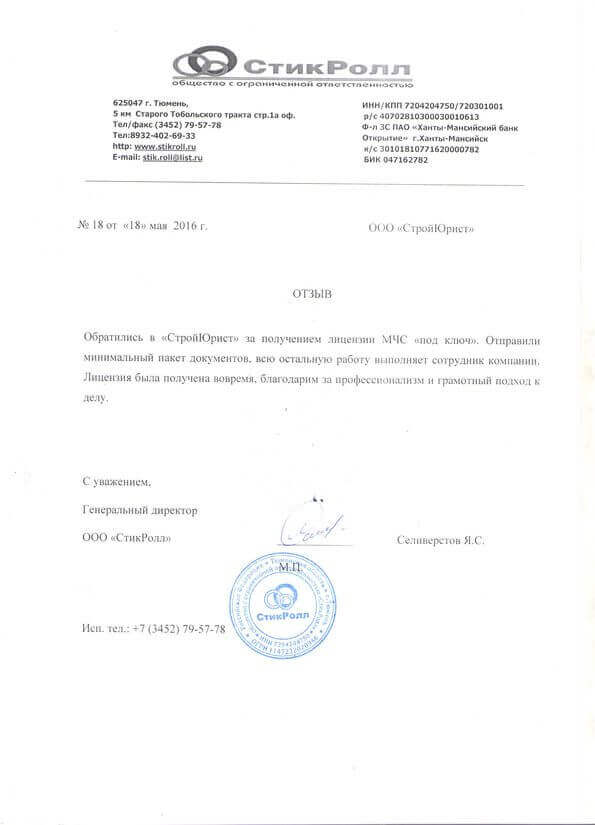 Отзывы клиентов "СтройЮрист" по лицензированию МЧС в Альметьевске