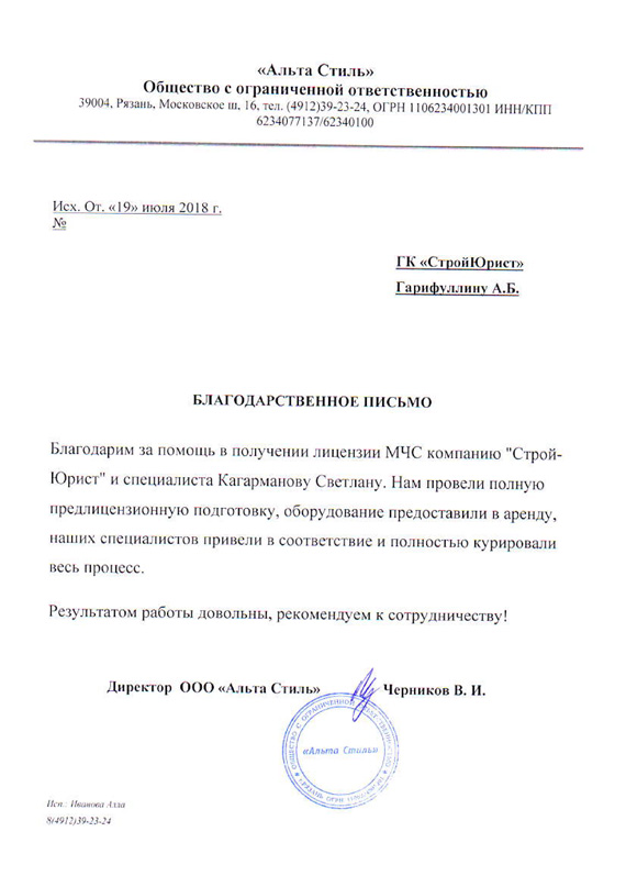 Отзывы клиентов "СтройЮрист" по лицензированию МЧС в Альметьевске