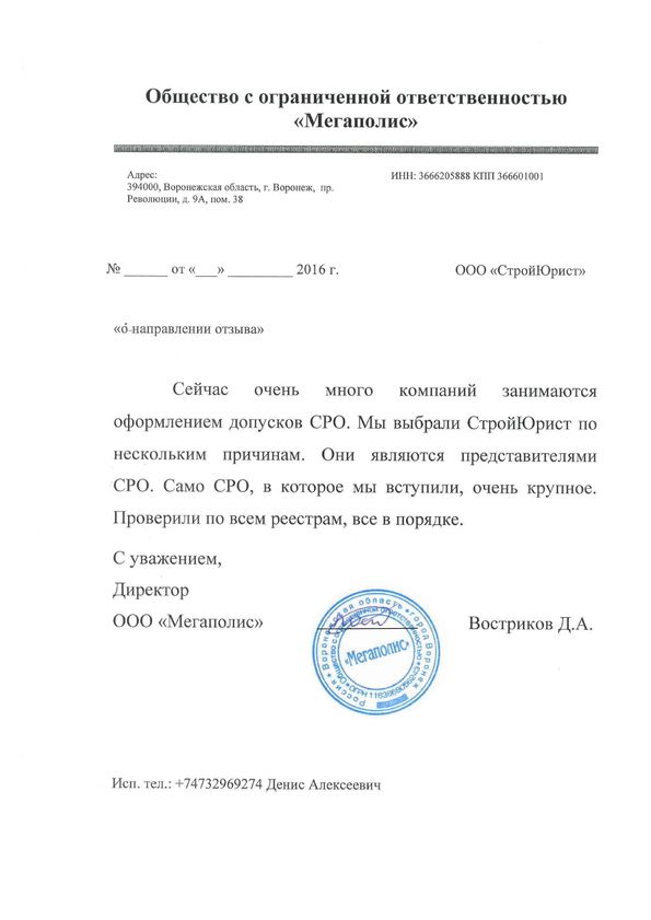 Отзывы клиентов "СтройЮрист" по вступлению в СРО в Альметьевске