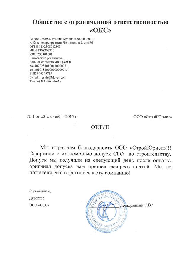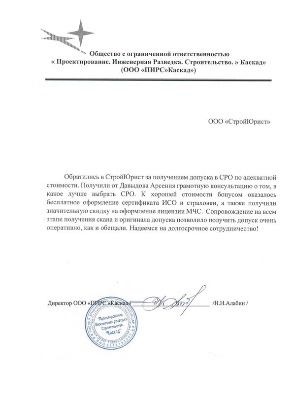 Отзывы клиентов "СтройЮрист" по вступлению в СРО в Альметьевске