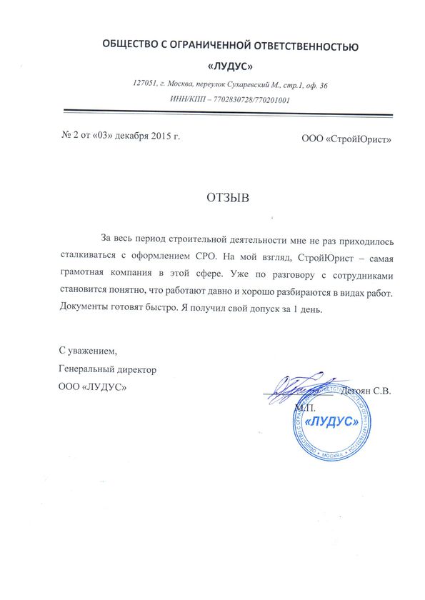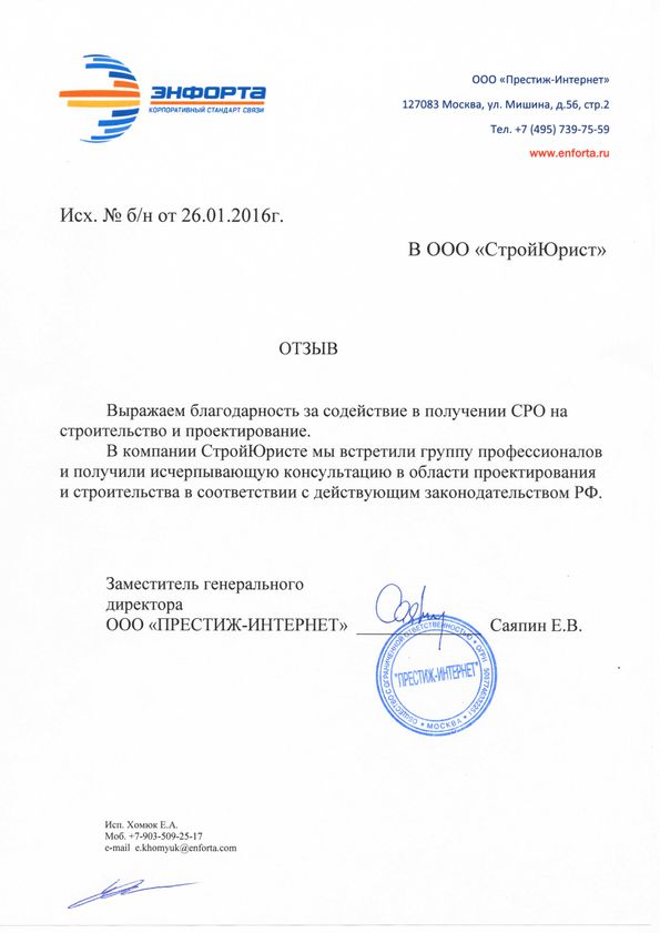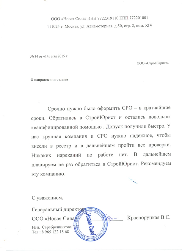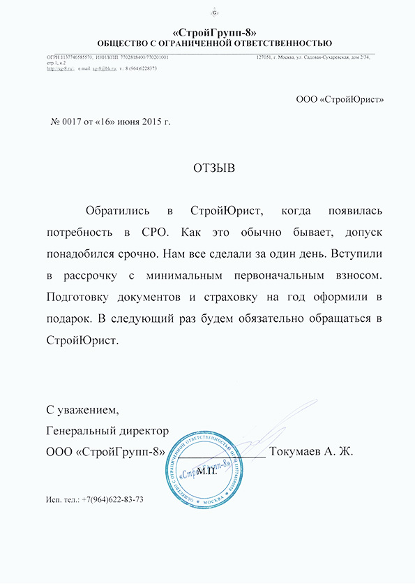 Отзывы клиентов "СтройЮрист" по вступлению в СРО в Альметьевске