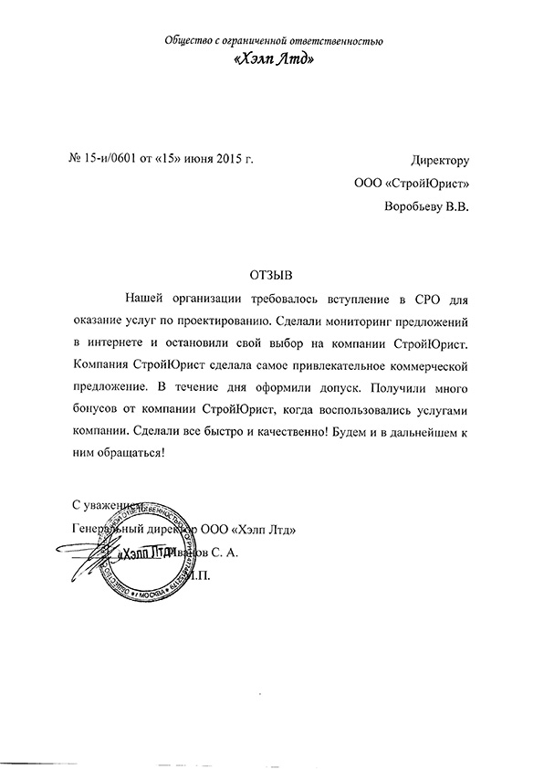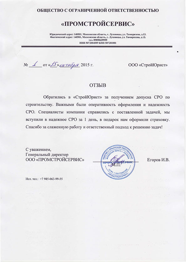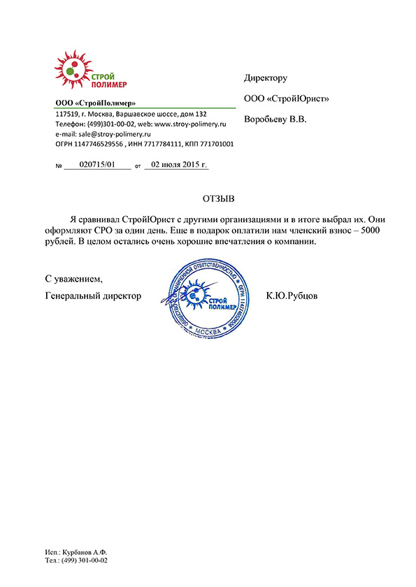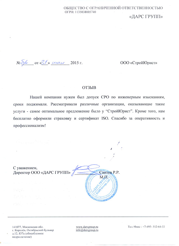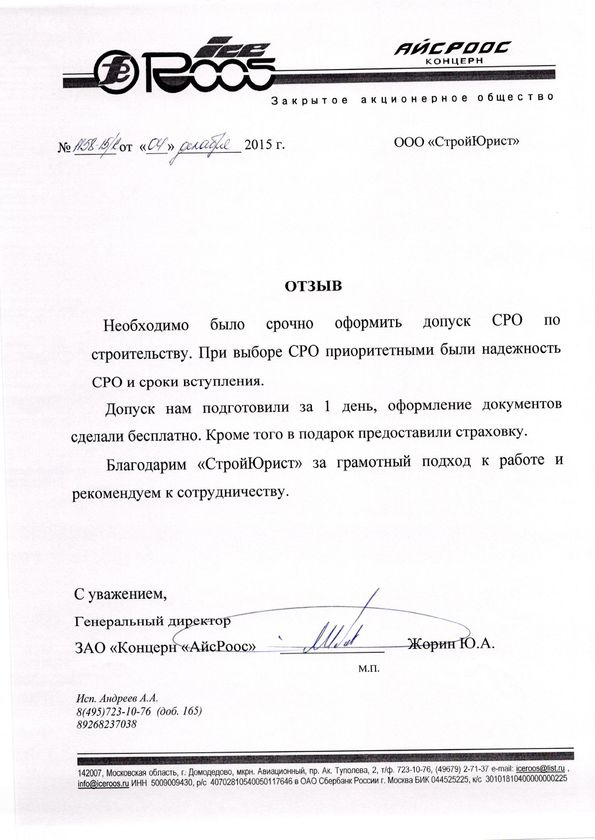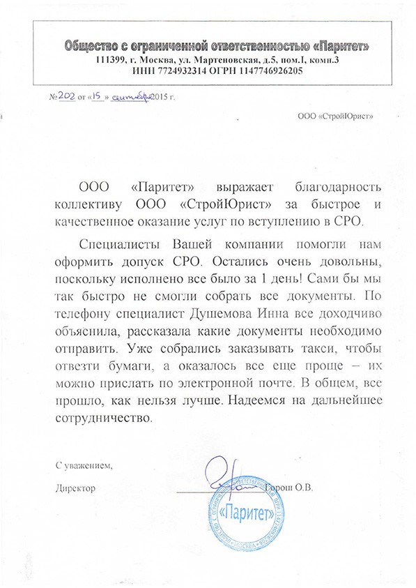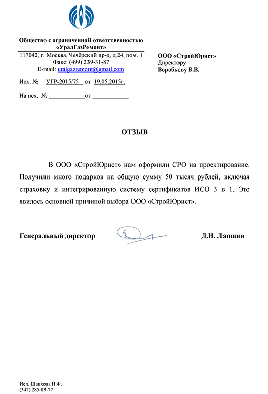 Отзывы клиентов "СтройЮрист" по вступлению в СРО в Альметьевске