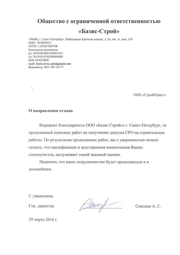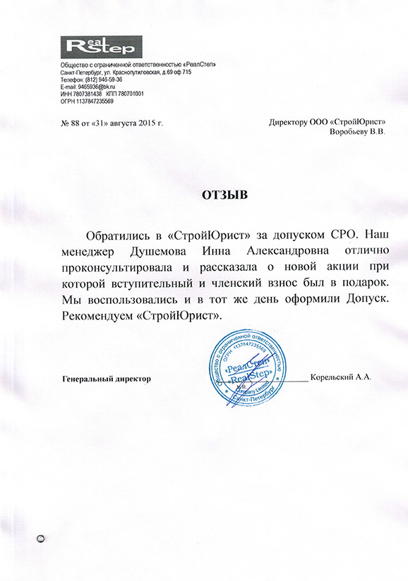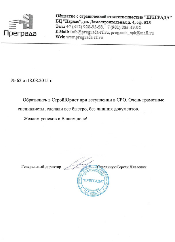 Отзывы клиентов "СтройЮрист" по вступлению в СРО в Альметьевске