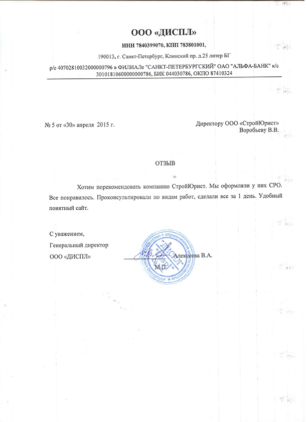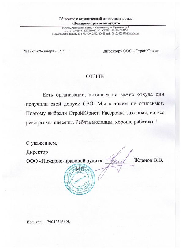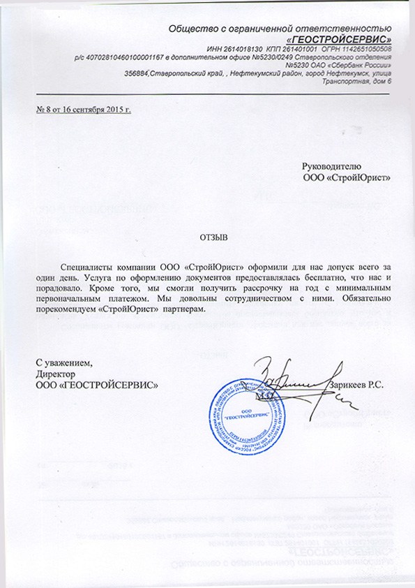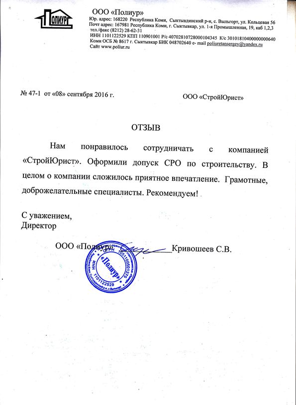 Отзывы клиентов "СтройЮрист" по вступлению в СРО в Альметьевске