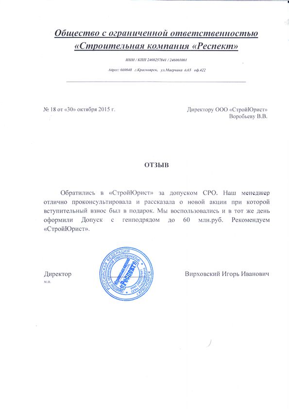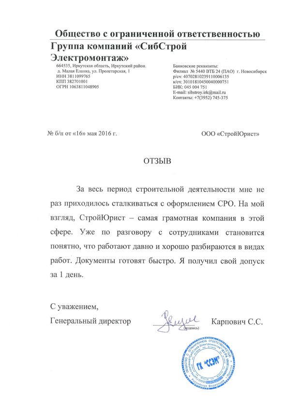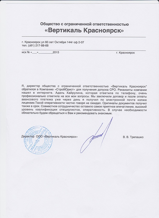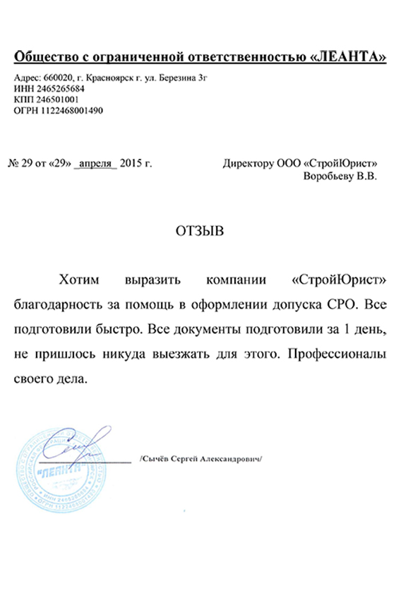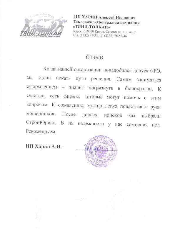 Отзывы клиентов "СтройЮрист" по вступлению в СРО в Альметьевске