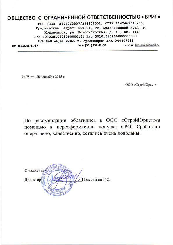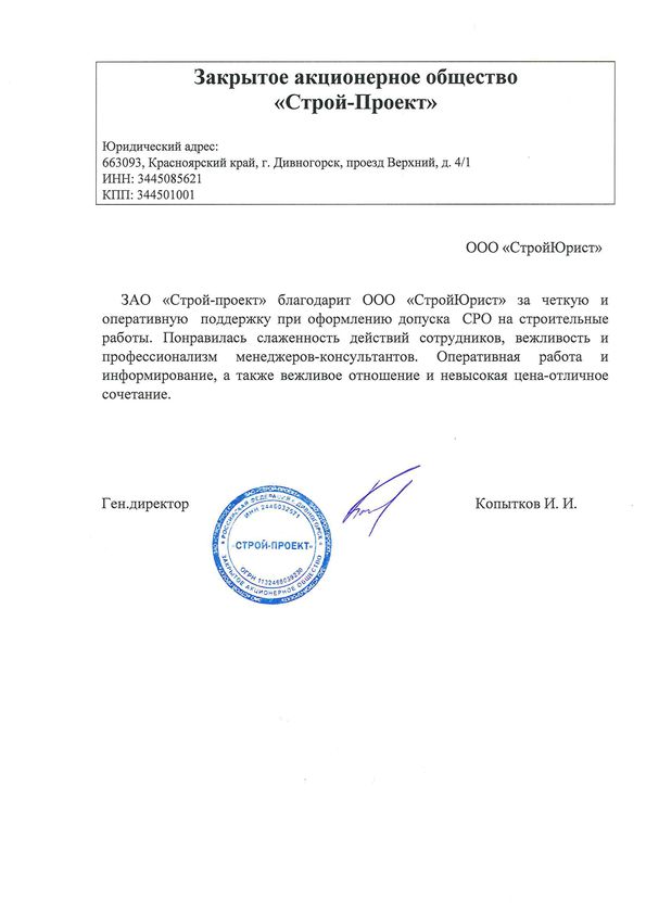 Отзывы клиентов "СтройЮрист" по вступлению в СРО в Альметьевске