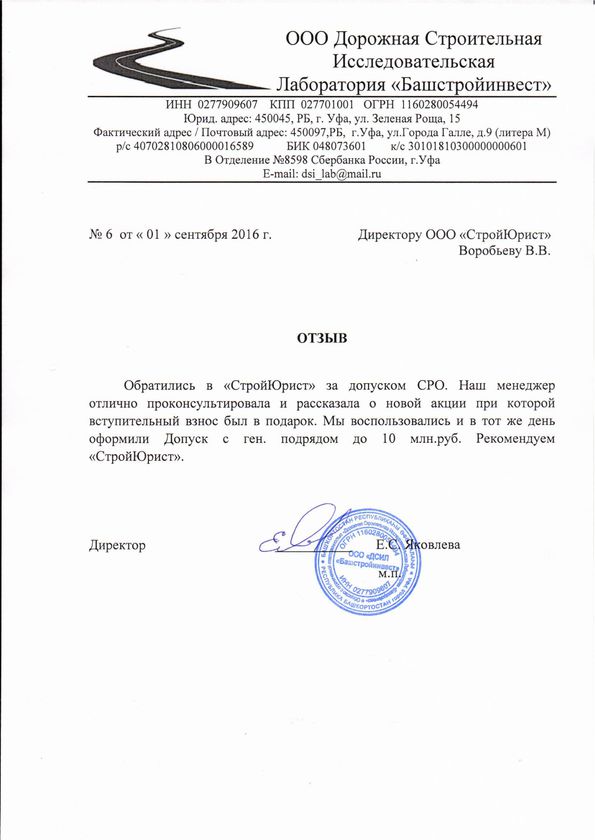 Отзывы клиентов "СтройЮрист" по вступлению в СРО в Альметьевске